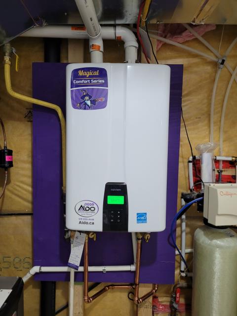 Tankless flush and drip tube installed. Radiant in floor heating temp set to 132f.