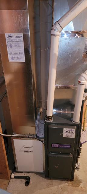 Furnace maintenance: Checked gas pressure- 1.9" w.c low fire, 3.46" w.c high fire Checked safeties Cleaned flame sensor and drain lines Checked operation of humidifier, UV lamp and HEPA filter - humidifier pad should be changed this year