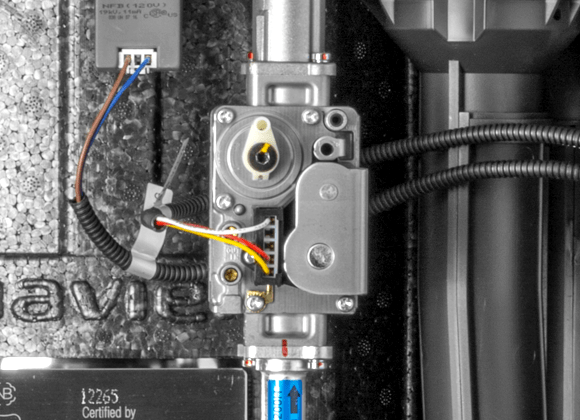 Negative pressure regulating gas valve ensures maximum performance all the way down to 3.5" of water column on natural gas and 8" of water column on propane gas.